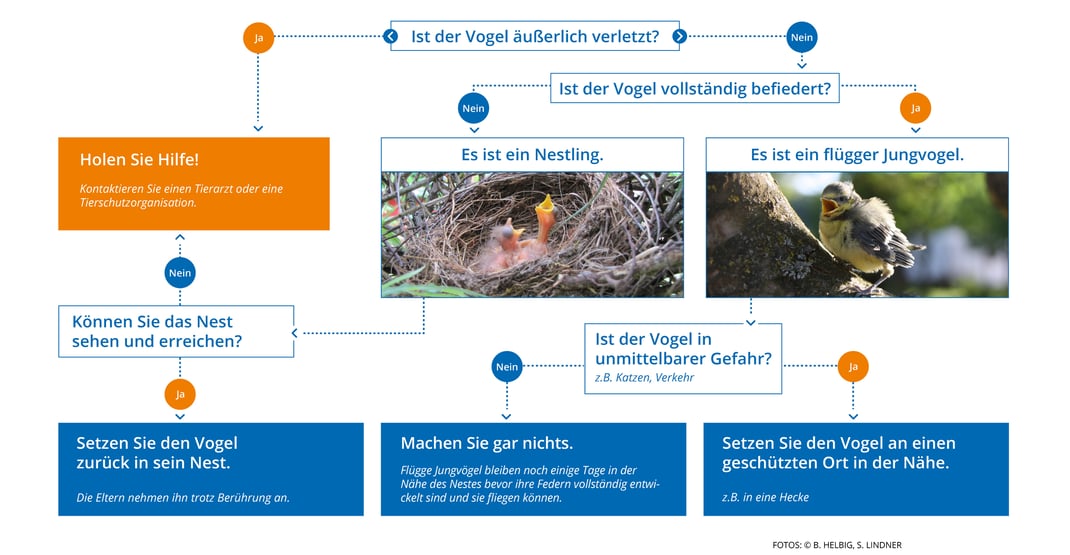 - Hat er schon Federn, warten Sie 2 Stunden ab. Kommen die Eltern zurück, ist alles in Ordnung.